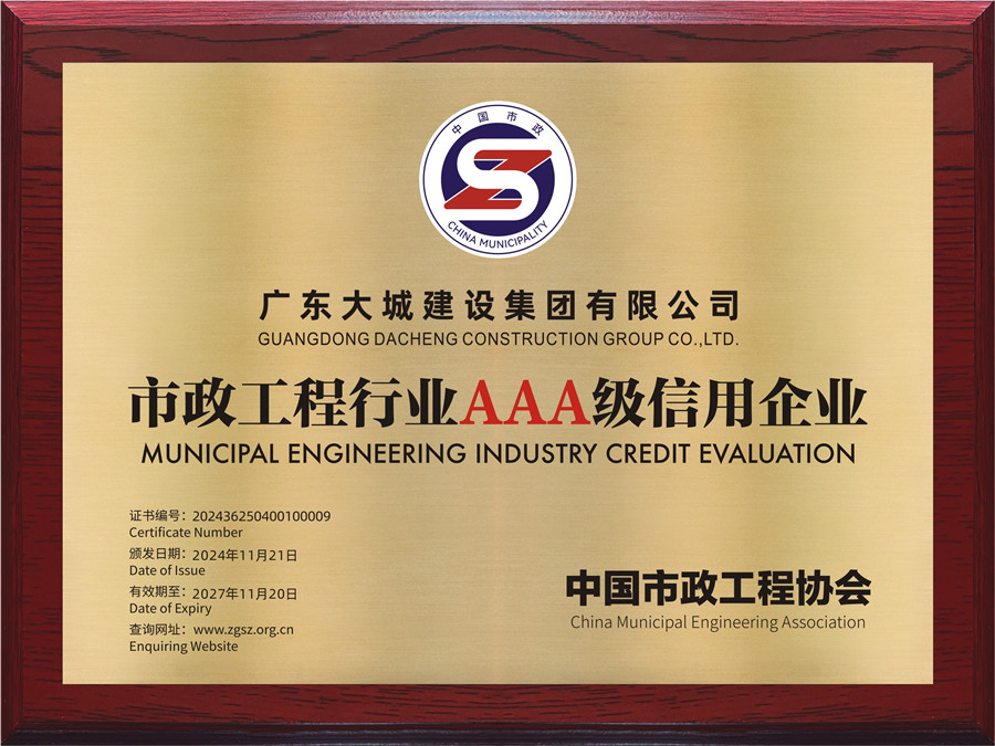 我司首次榮獲“中國(guó)市政工程行業(yè)AAA級(jí)信用企業(yè)”稱號(hào)